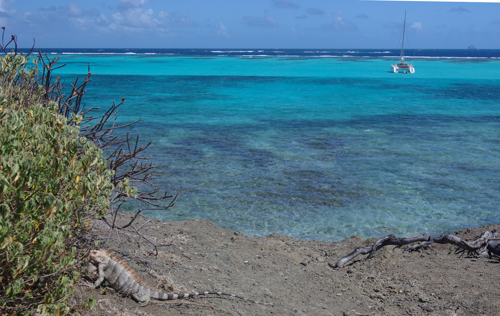 We headed straight for the rendezvous in Tobago Cays, navigating nervously through the coral reefs that surround it. It is not actually in Tobago at all, but in the Grenadines, north of Grenada. It is a coral atoll, with a large horseshoe reef, always under water, which you anchor behind. So you are looking straight out towards Africa across the Atlantic, with the reef protecting you from the ocean swells, more so at low tide than high tide. As you can see it is a little slice of heaven.